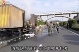 半岛V视丨惊险!高速路上大货车爆胎自燃