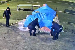 深夜风雨中的守护!店铺盖货篷布被吹起,胶州民警冒雨帮压好